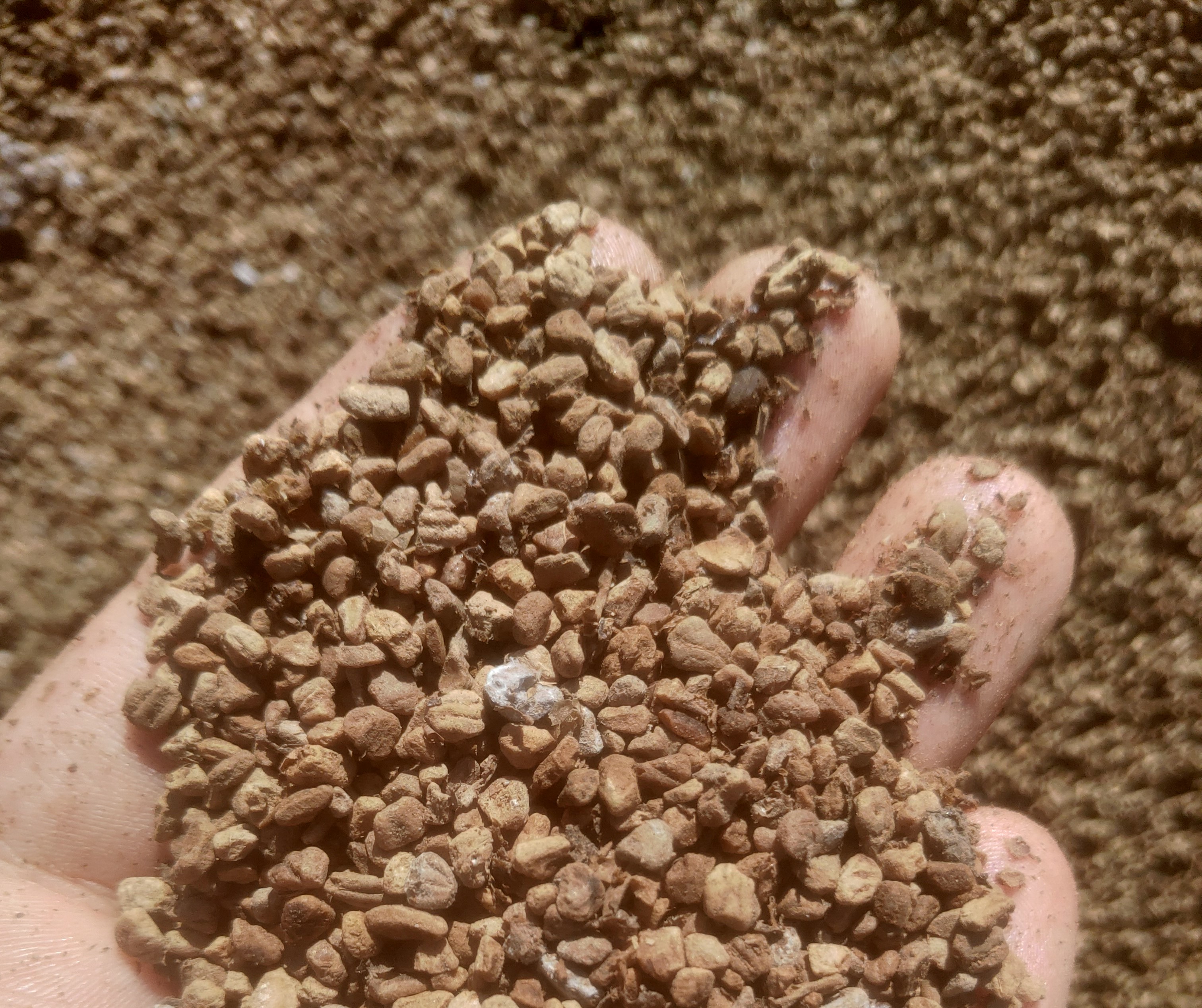 Zeytin çekirdeği, ekolojik pirinanın elekle ayrıştırılmasından elde edilir.